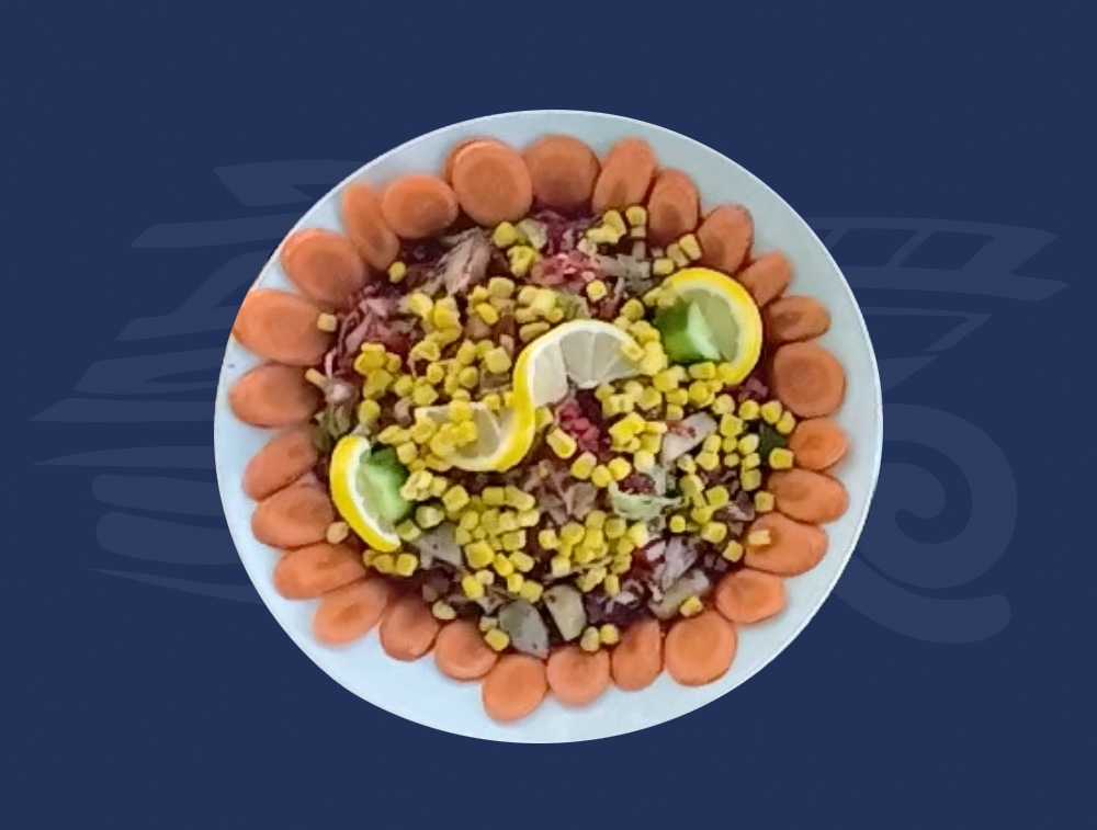 A cold starter typically made with vegetables like corn, peas, carrots, and red peppers, dressed with olive oil and lemon.